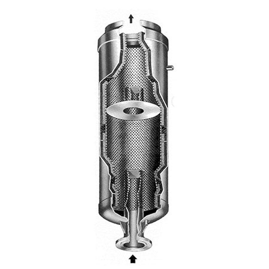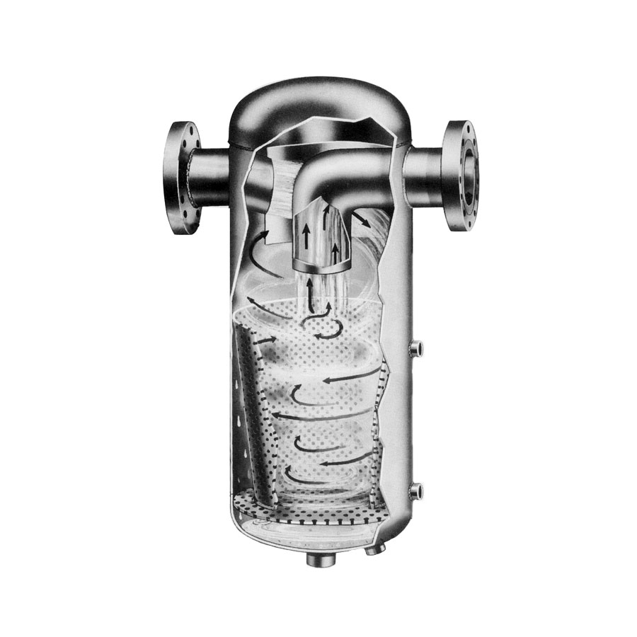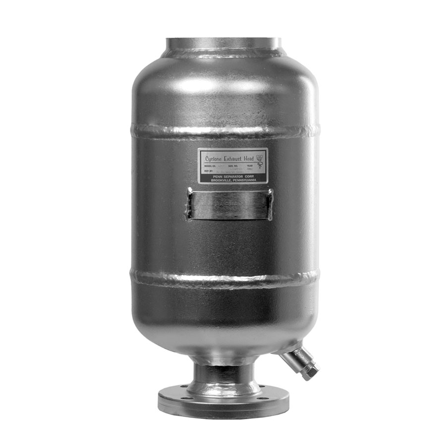 Penn moisture separators provide for the removal of entrained liquid droplets in flowing steam or air streams within a piping system. They use the velocity of the fluid and centrifugal force to separate, retain and drain the troublesome moisture droplets. Penn vent silencers quiet the high decibel release of compressed air or steam going to atmosphere, normally during testing of compressor or boiler equipment.